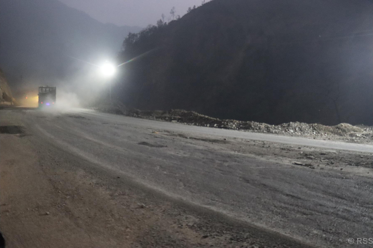 लाइट जडानपछि पहिरो झरेको र ढुङ्गा खसेको सहजै देख्न सकिनेछ । यो सडकखण्डमा ‘ओभरटेक’ नगरी संयमित भइ यात्रा गर्न चालक एवं यात्रीलाई आग्रहसमेत गरिएको श्रेष्ठले बताउनुभयो ।