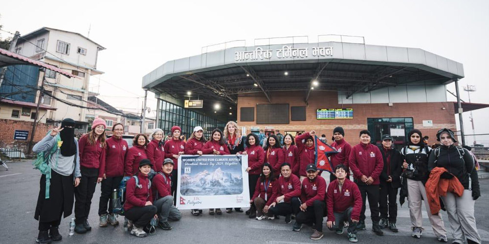 काठमाडौँ, १७ फागुन : जलवायु परिवर्तनका कारण हिमाल पग्लिएको र यसले स्थानीय समुदायमा पारेको असरका विषयमा विश्व समुदायको ध्यानाकर्षण गराउने नेपाली महिलाको टोली कालापत्थरतर्फ प्रस्थान गरेको छ । जलवायु परिवर्तन तथा महिला सशक्तीकरणका क्षेत्रमा काम गर्दै आएको सामाजिक संस्था साथसाथैले अन्तर्राष्ट्रिय महिला दिवस २०२४ सगरमाथा क्षेत्रको कालापत्थरमा मनाउने भएको हो । विभिन्न क्षेत्रमा अग्रणी भूमिकाका […]