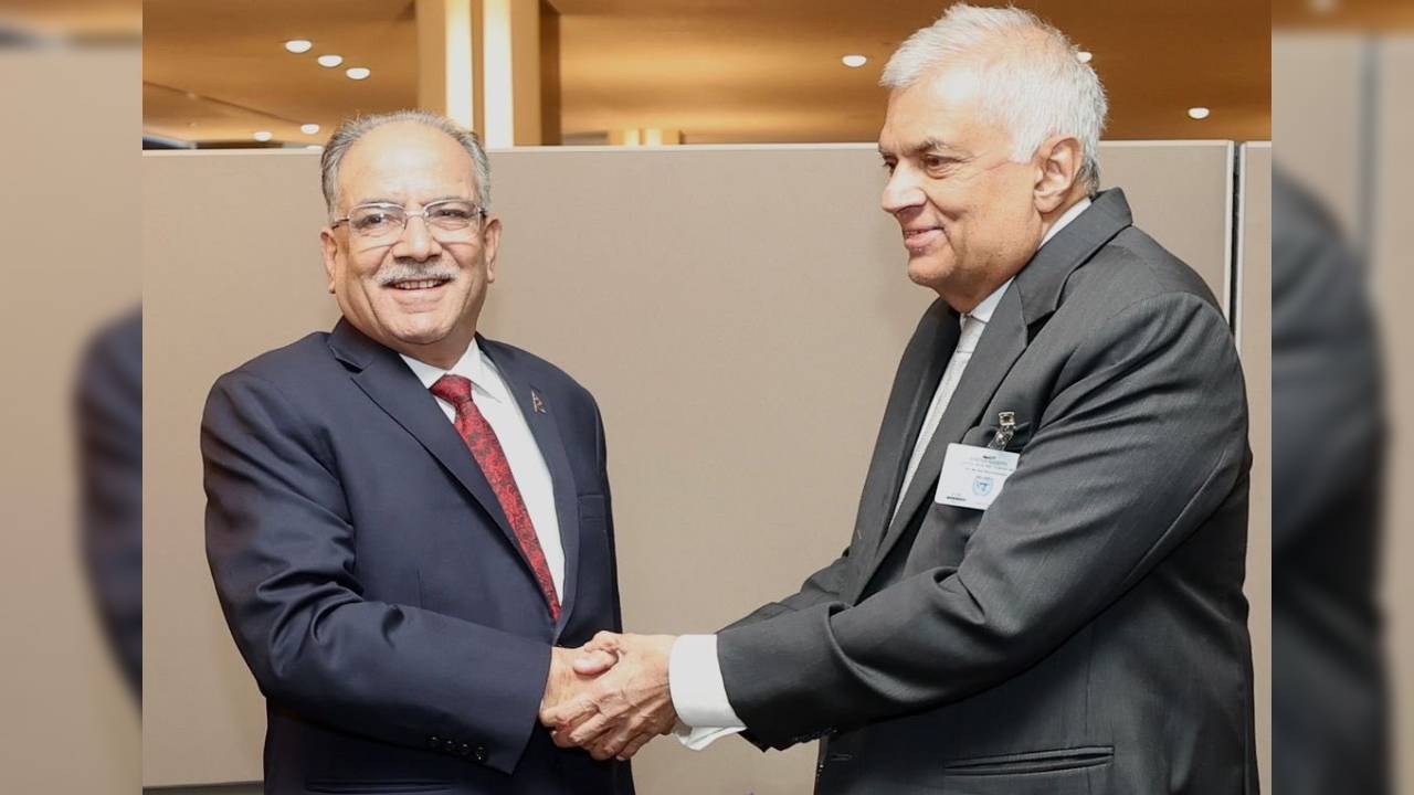 न्यूयोर्क, ३ असोज : संयुक्त राष्ट्रसङ्घको ७८औँ महासभामा भाग लिनका लागि न्यूयोर्क आउनुभएका प्रधानमन्त्री पुष्पकमल दाहाल ‘प्रचण्ड’सँग श्रीलङ्काका राष्ट्रपति रनिल विक्रमसिङ्घेबीच मङ्गलबार न्यूयोर्कमा भेट भएको छ । भेटका अवसरमा प्रधानमन्त्री दाहाल र राष्ट्रपति विक्रमसिङ्घेबीच नेपाल र श्रीलङ्काको द्विपक्षीय सम्बन्ध विस्तार तथा बहुपक्षीय सहकार्यका बारेमा छलफल भएको न्यूयोर्कस्थित नेपाली नियोगले जनाएको छ ।
